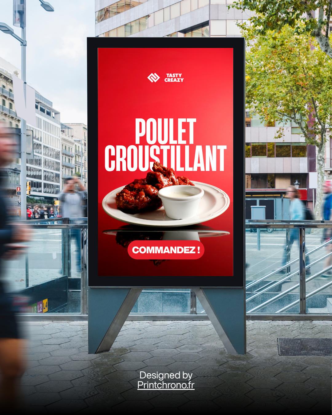 Conception et installation d'un panneau publicitaire grand format pour booster la visibilité de PRINTCHRONO en zone urbaine. Notre équipe UX/UI a optimisé le design pour une lisibilité maximale à distance, tandis que nos agents affiliés locaux ont assuré une pose rapide et conforme sur site.